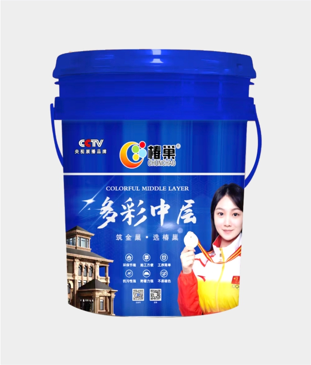 经特殊工艺加工形成两种或两种以上的水性色粒子悬浮在水性介层中的多彩涂料。形成的漆膜图案豪华、美观、多彩;通过一次性喷涂形成的图案与通过多道工序依次完成才能形成的多彩花纹的方法完全不同。